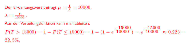st9070 Die mittlere Lebensdauer einer Energiesparleuchte ist mit 10.000 Stunden angegeben. Wie groß ist die Wahrscheinlichkeit, daß eine Energiesparleuchte aus dieser Charge auch nach 15.000 noch Stunden brennt ?