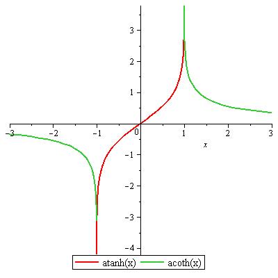 | y | = | arcoth(x) | = | 1/2ln (x+1)/ (x−1) |